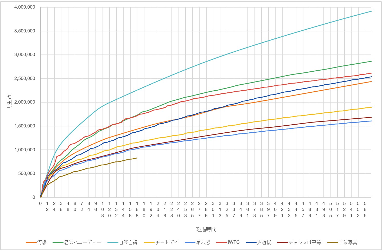 女性アイドル年間MV再生回数100 坂道比較