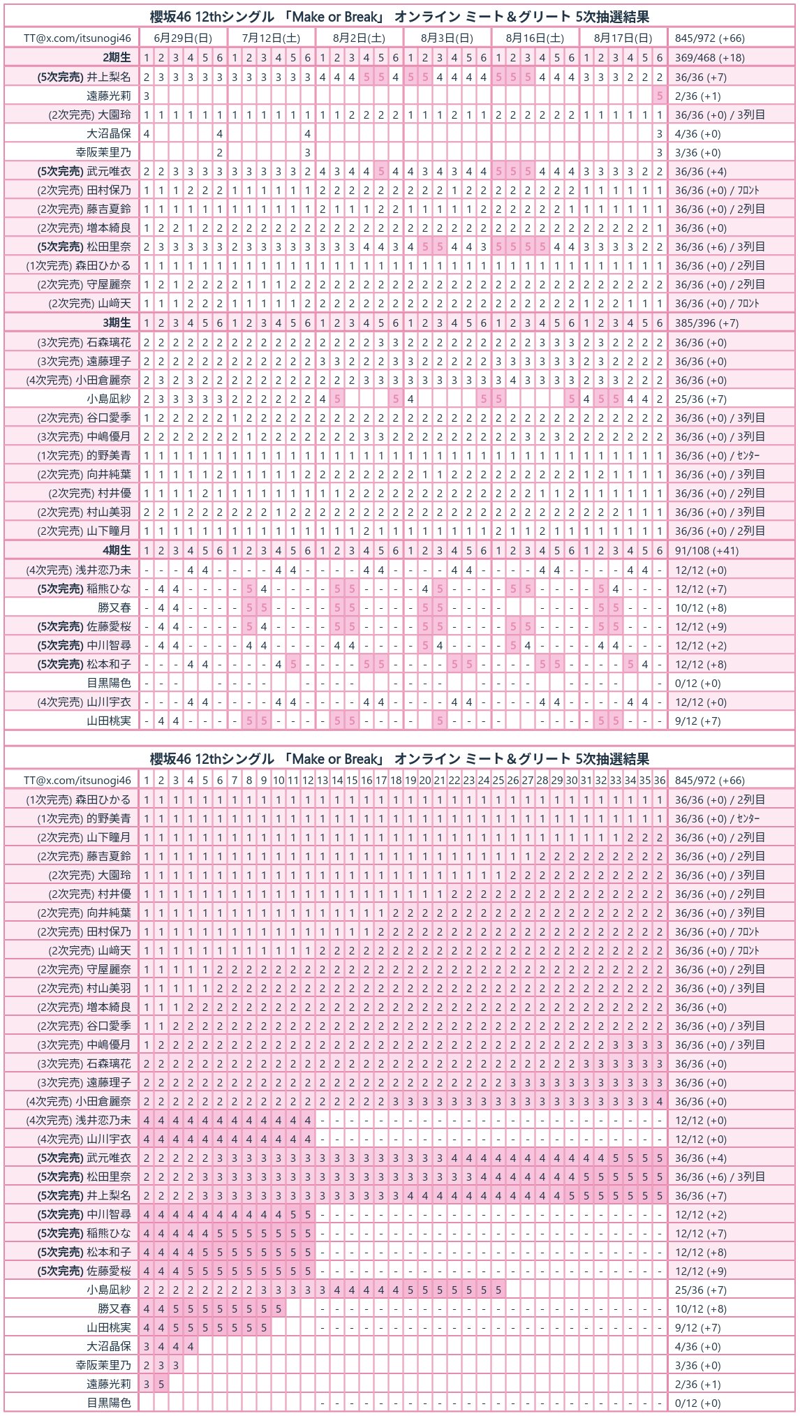 3期の与田、久保下や4期の遠藤、賀喜は二次完売で免除まで到達してるのに