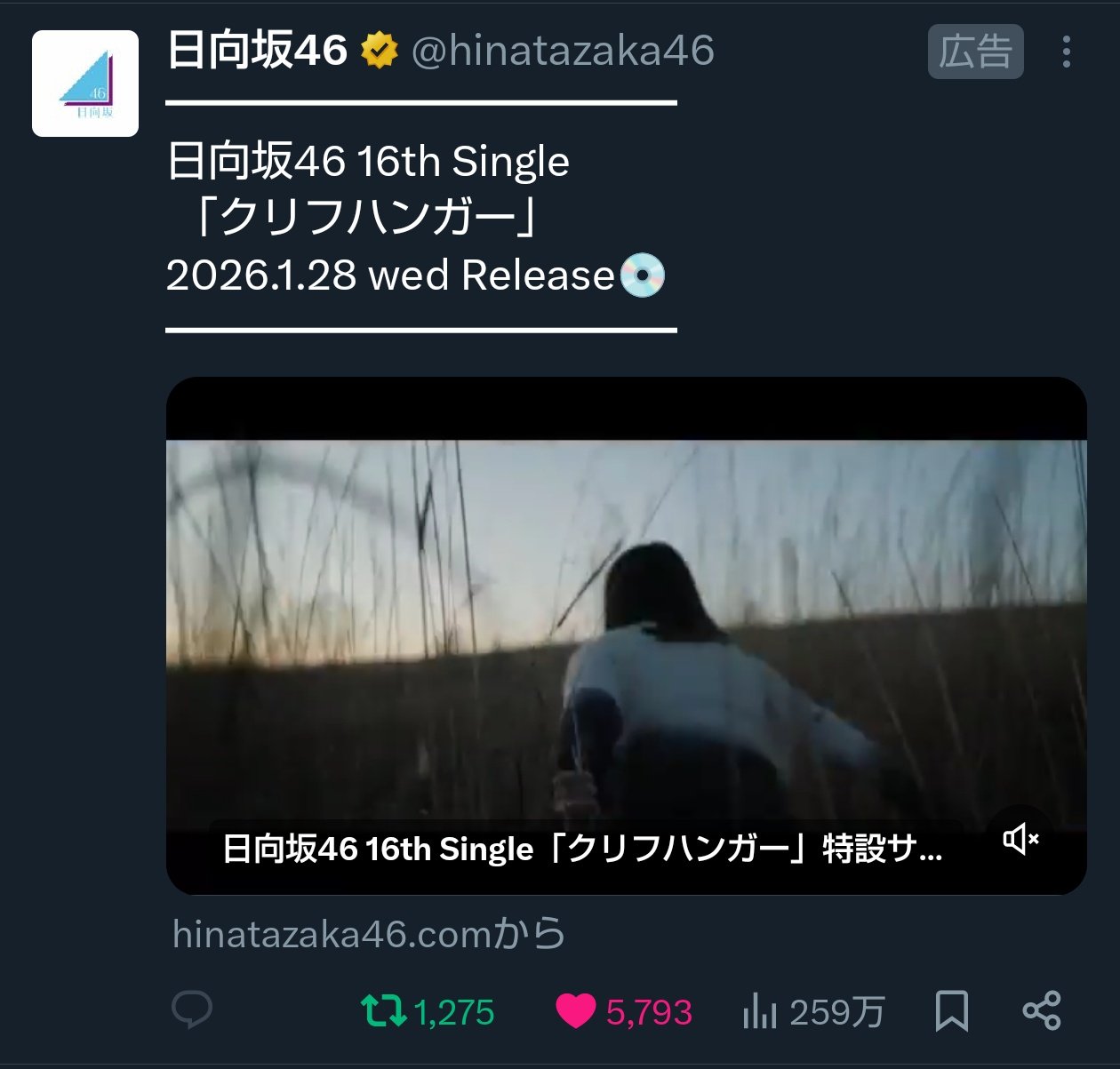 日向坂 クリフハンガー 215万再生