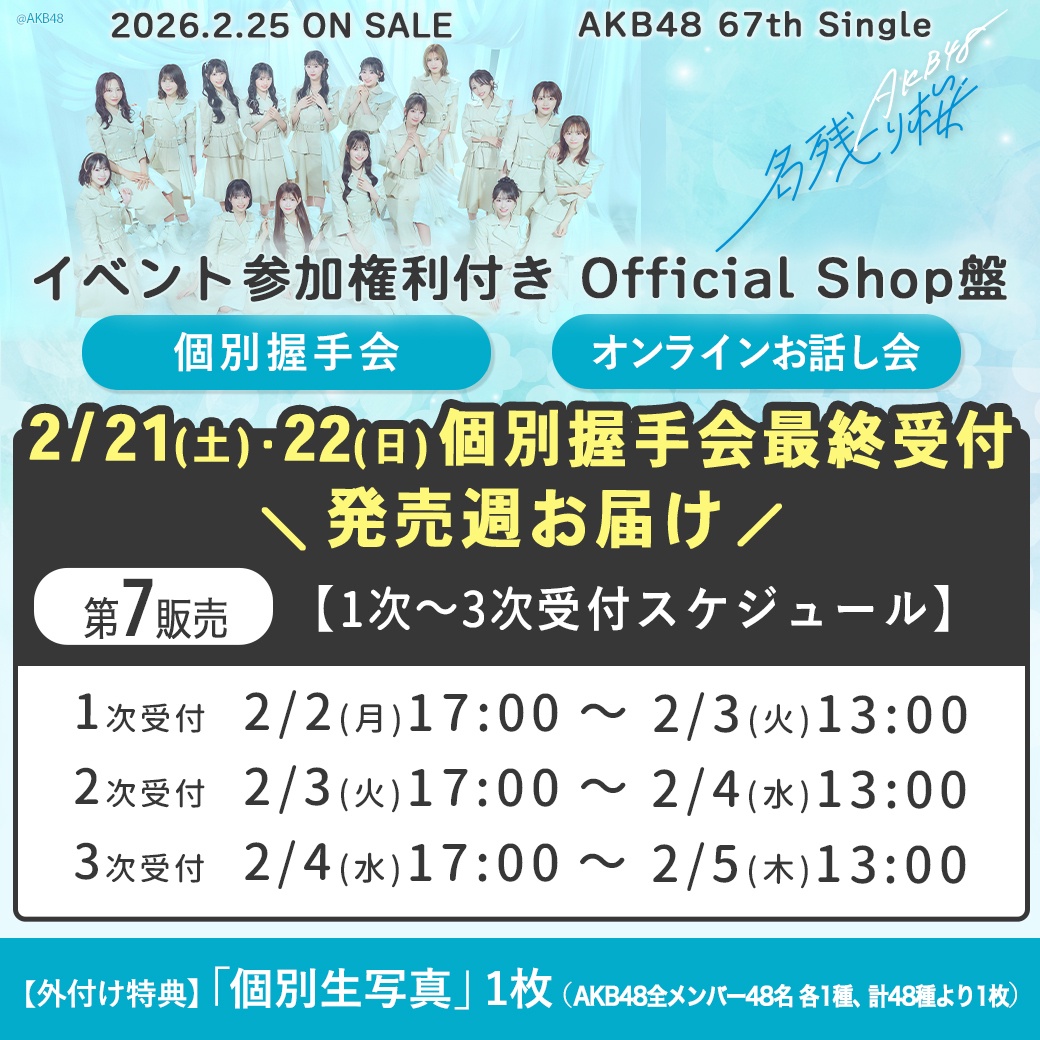 【速報】2/2現在 AKB48・67thシングル「名残り桜」メンバー完売表 キタ━━(((゚∀゚)))━━━━━!! 【68thシングル選抜指標】