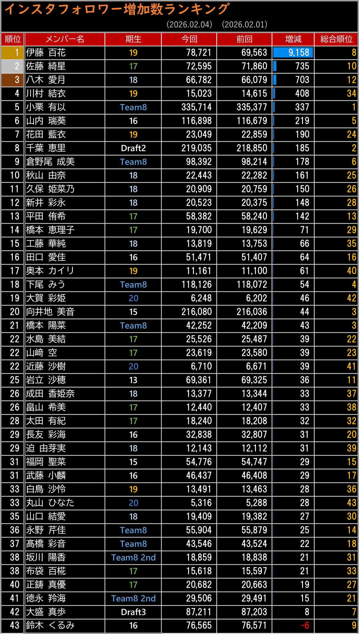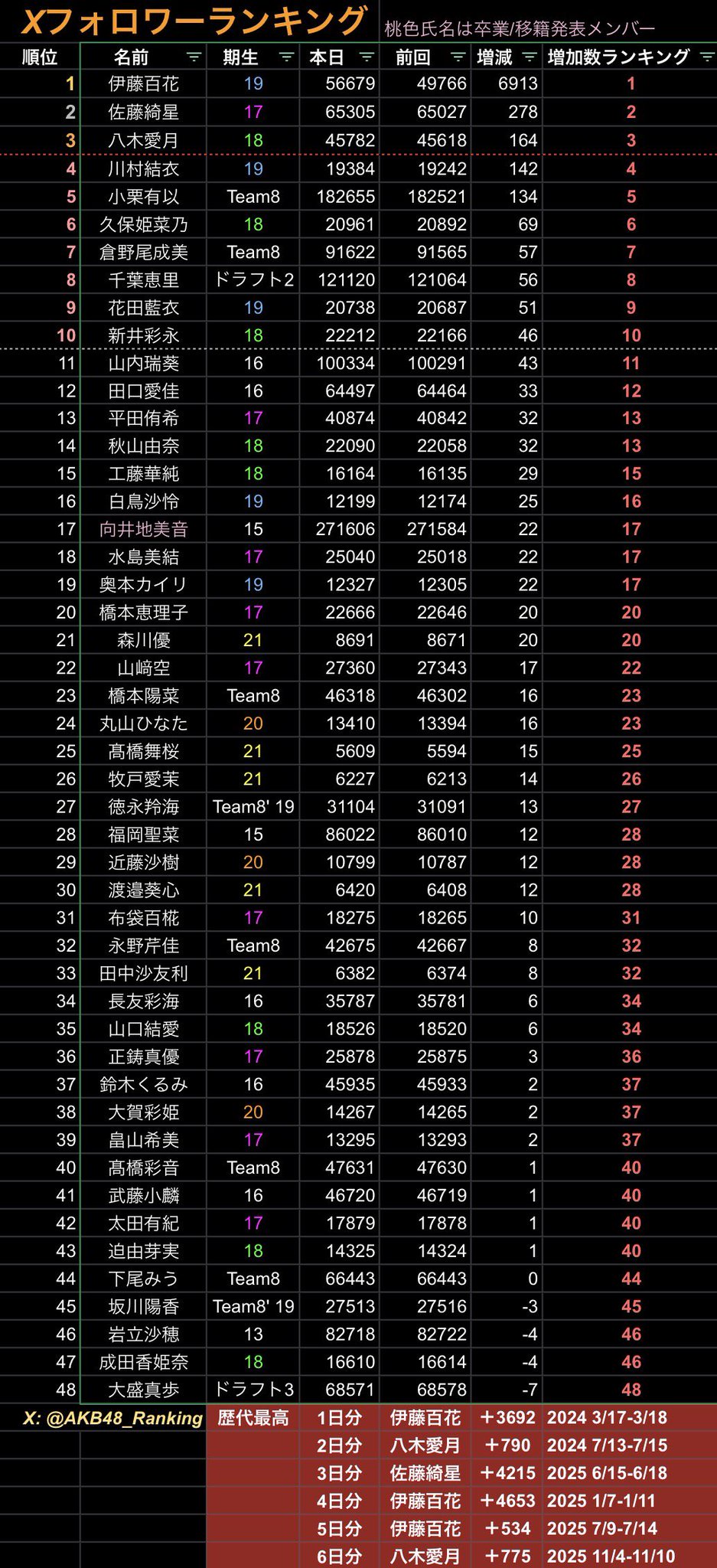 ⭐ 伊藤百花が歴代最高の増加数(伊藤百花+3692)を更新