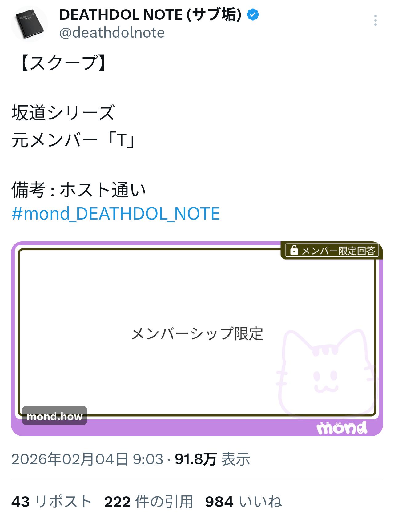 現役時代にラウンジで働いてて綾野剛と関係持ってたメンバーもいるんだから、卒業してからホスト行ってるくらいどうでも良い事じゃないのか?