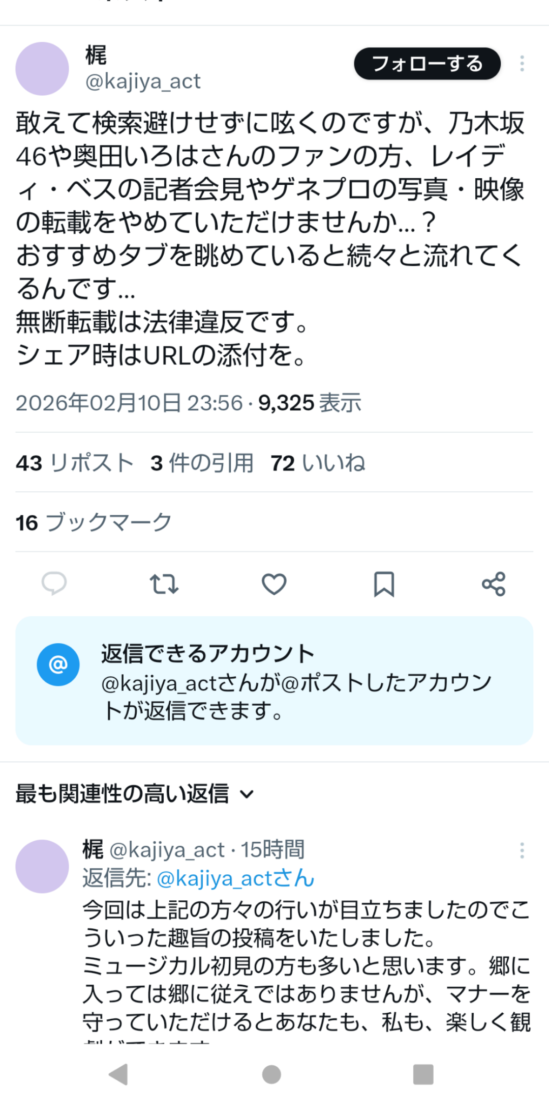 インスタの画像だけ貼り付けるのと同じ理屈だと思うけどミュージカルヲタ界隈はそんなに統率取れてるのか?