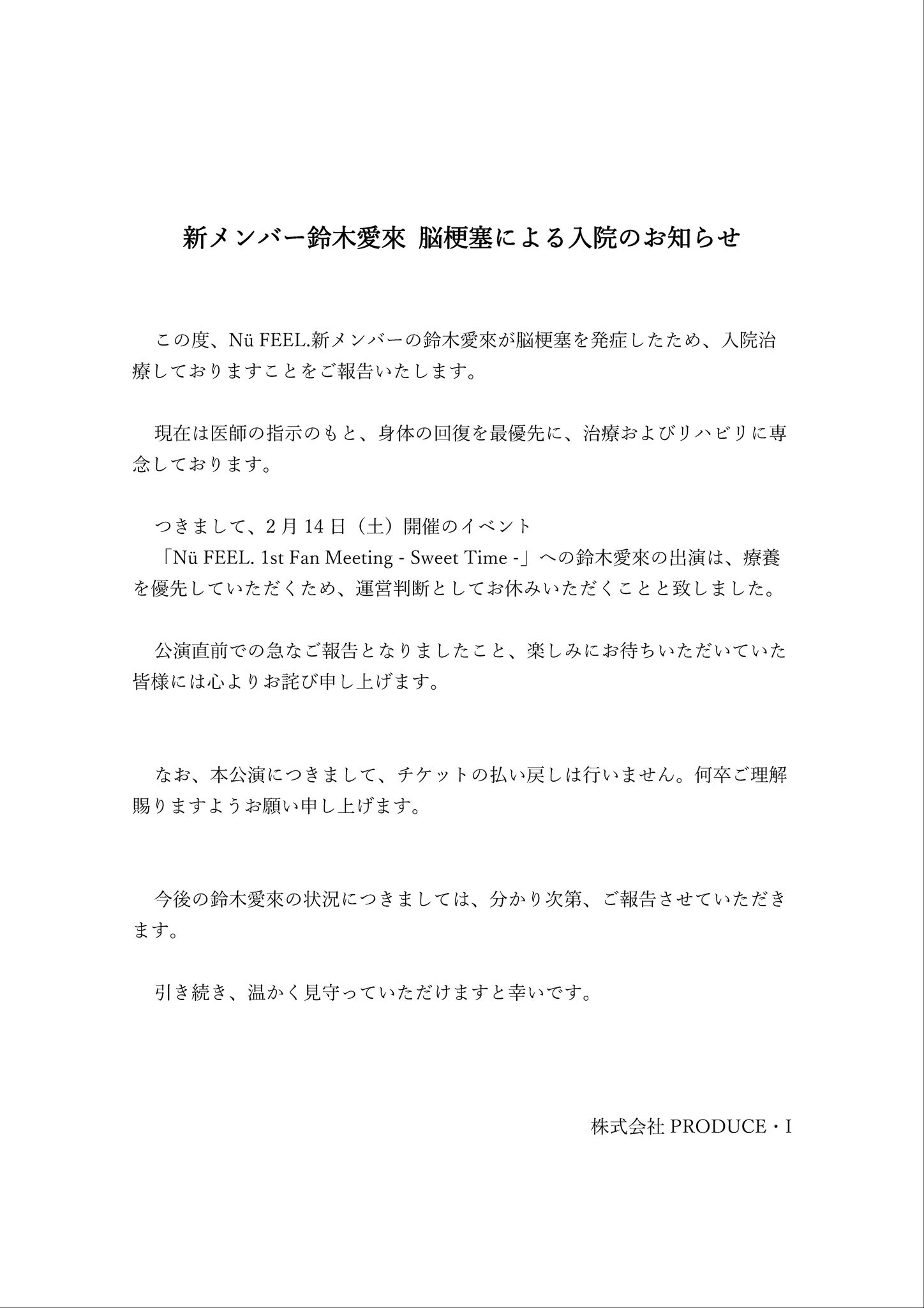 14日のイベント出演は運営判断で休み