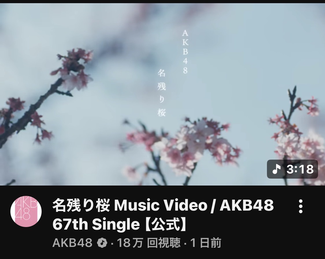 【速報】AKB48『名残り桜』 MV解禁 24時間再生回数、18万回