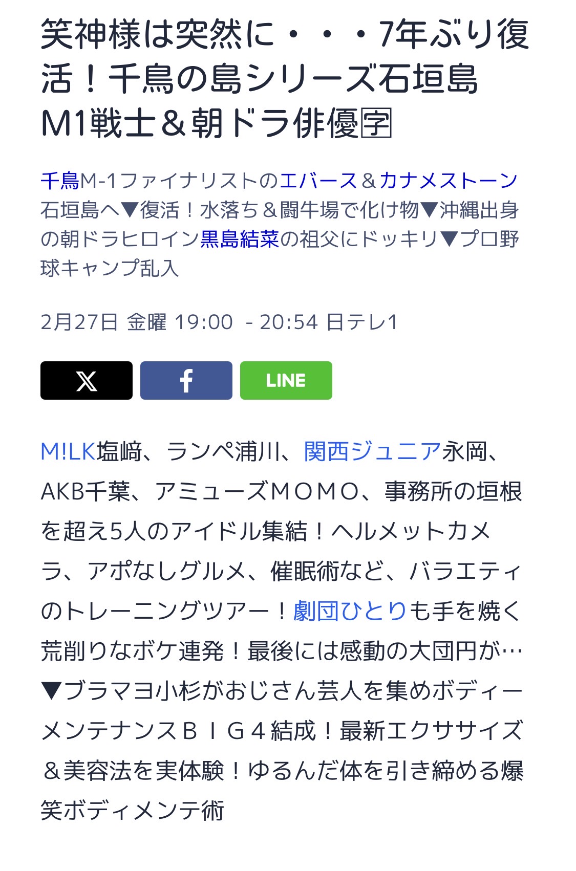 3月1日(日)夕方4時55分放送:テレビ東京