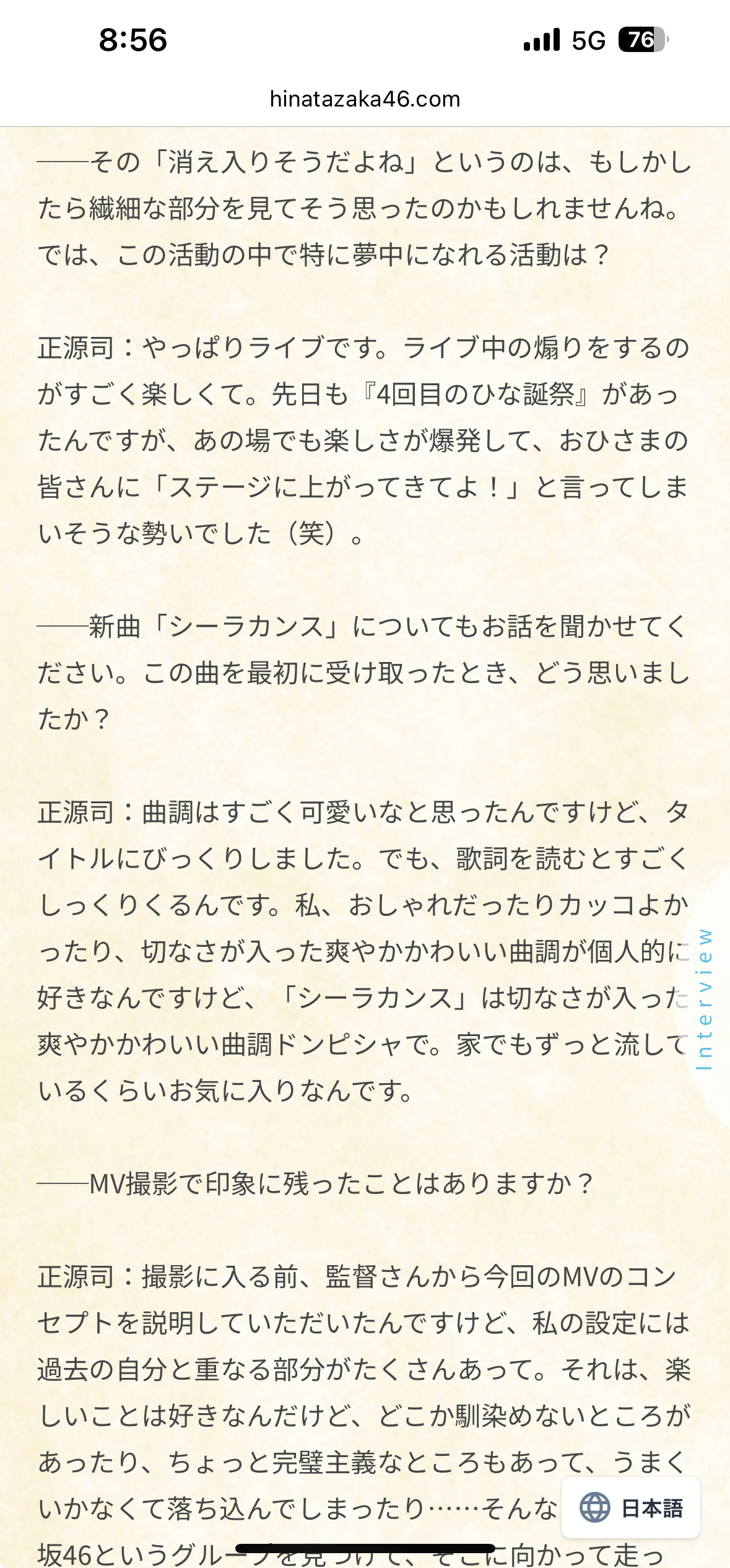 実際このインタビュー掲載直後は大分騒ついてたよ、影山の件もあったから夢は演技って部分で日向坂を踏み台にして女優やりたいの透けて見えるって色んなところで言われてたこの子がセンターになったら日向坂は終わりとすら言われてたからな