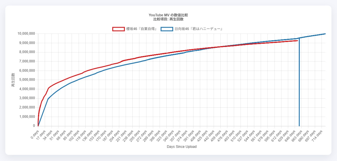 櫻坂のMVらしく後伸びしないという特徴で逆転されてしまい、いまだ1000万にもとどかず