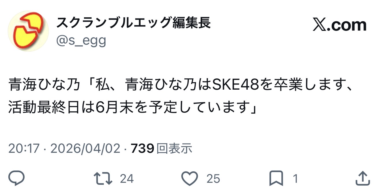 SKE48青海ひな乃卒業発表