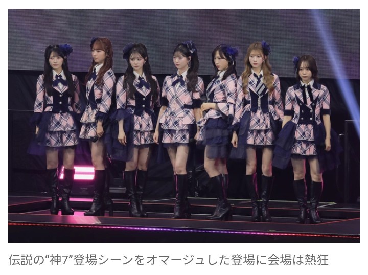 2017年に同会場で開催された小嶋陽菜卒業コンサートで前田敦子、大島優子ら“神7”が登場したシーンをオマージュした演出で、会場を圧倒した。