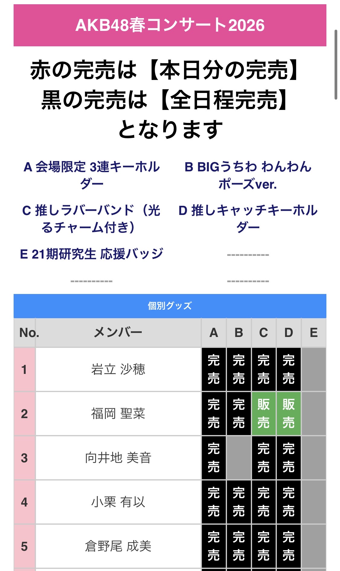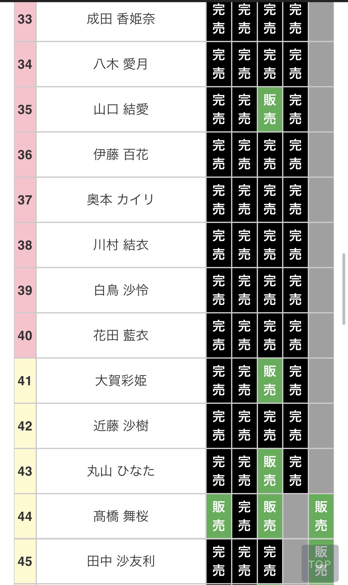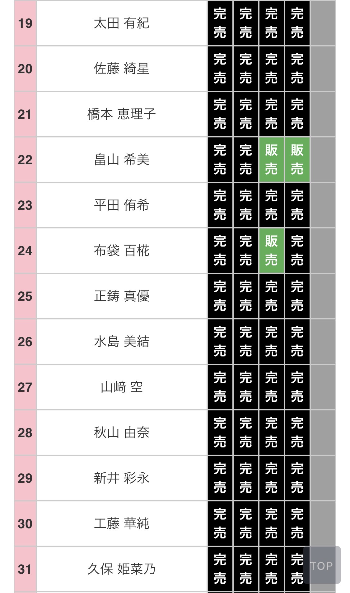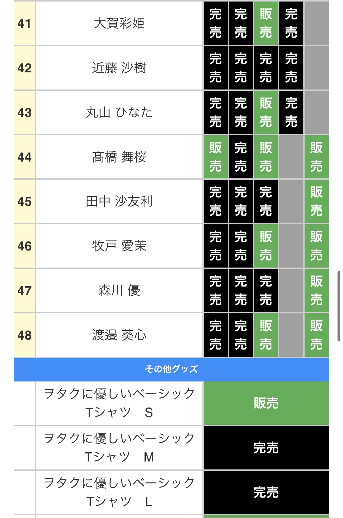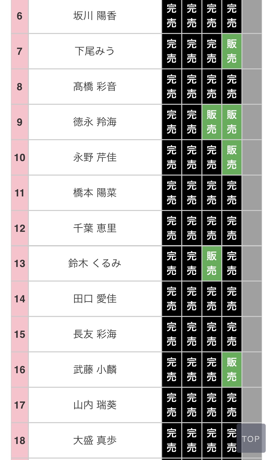 選抜なのに完売してないメンバーがいるな