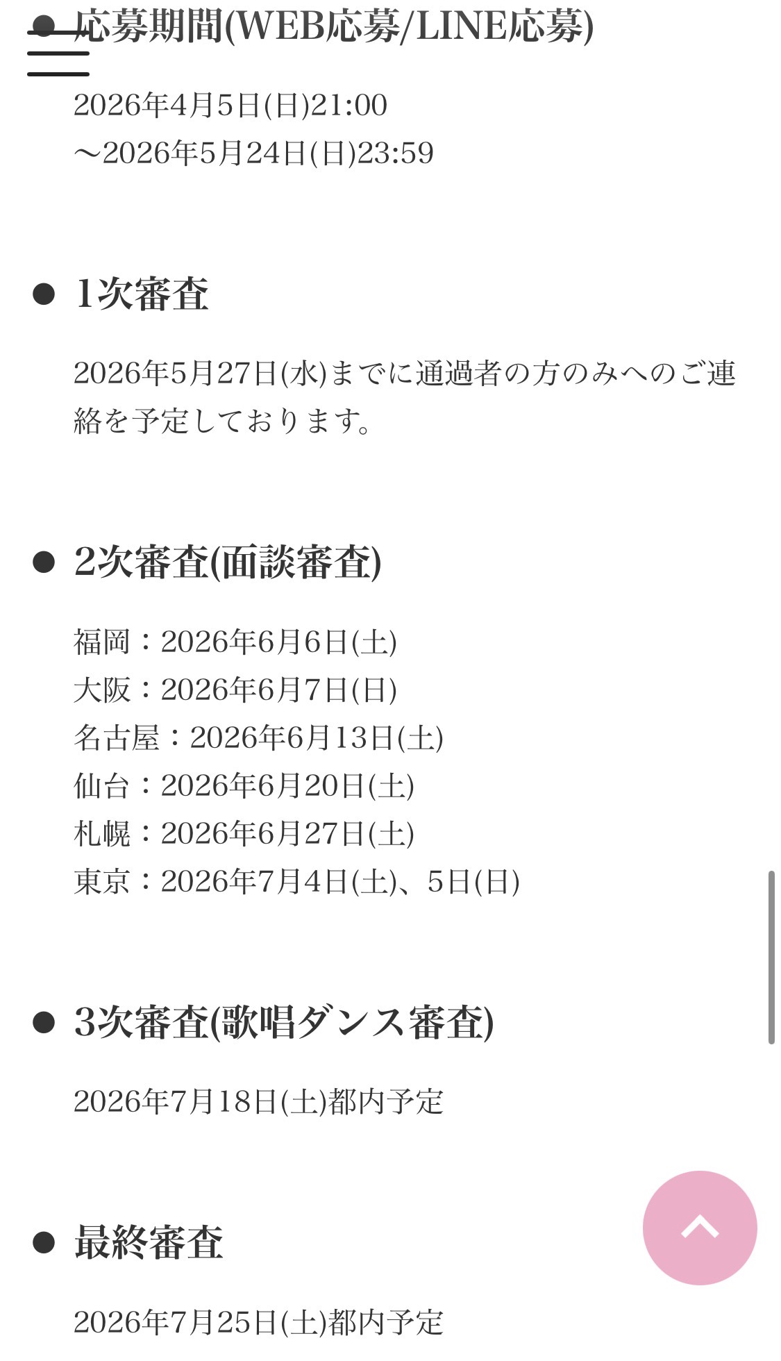 17期オーディションの時は年齢制限超えた受験生が3次審査まで来てしまい