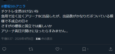 櫻坂国立チケットが売れない模様