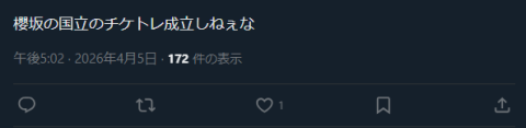 【悲報】助けて!土日に控えた櫻坂ひな国立チケットが売れないの