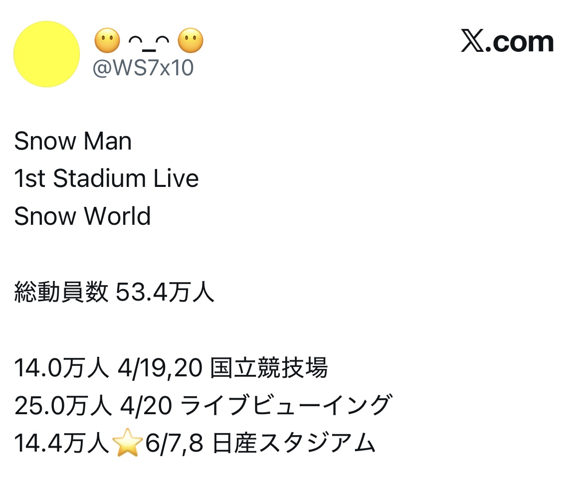 SnowManはまずチケットを当てる事から始まるから集めようと思えば余裕で全席埋まるぞ