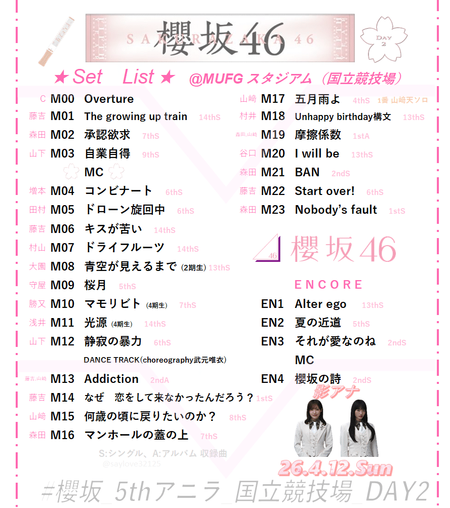 全曲口パクワンハーフで4割以上の曲が移動してるだけの乃木坂とは違ってほとんどの曲をフルサイズでノンストップパフォーマンスしてる櫻坂はそんなにセトリ変更できないの