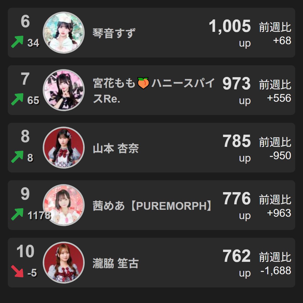 【女性アイドル】Xフォロワー増加数ランキング(2026.4.7~2026.4.13)