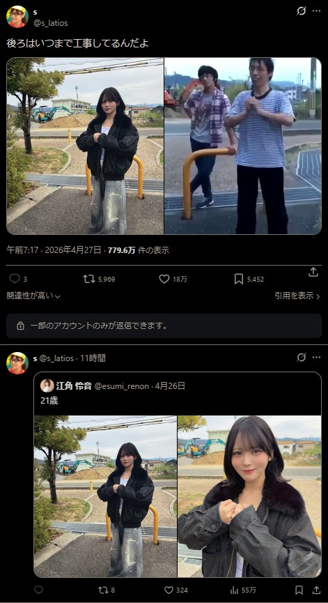 【画像】≒JOY江角怜音(21歳)のネットミームが700万バズw